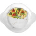 Porzellan, weiß. Planer Boden. Feuerfest bis 300°C. Spülmaschinengeeignet. Mikrowellenfest.