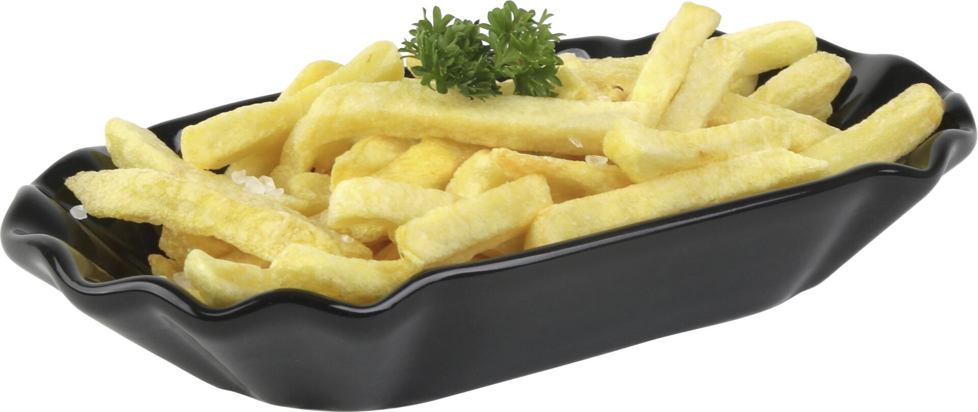 Porzellan, schwarz. In typischer Pommesschalen-Form. LxBxH in cm: 19,7x10x3 cm Inhalt in L: 0,3 Porzellan, schwarz. In typischer Pommesschalen-Form.
