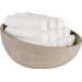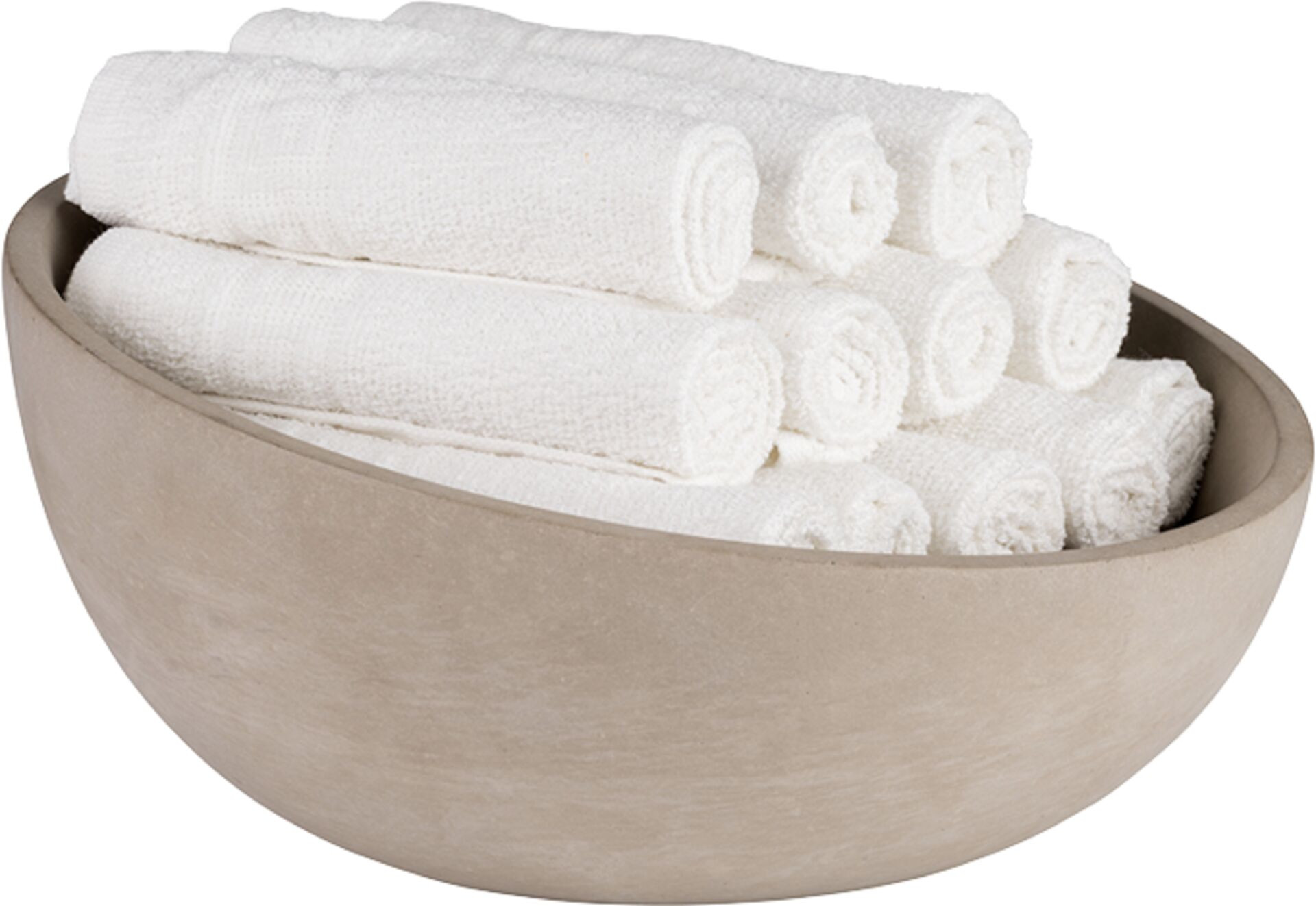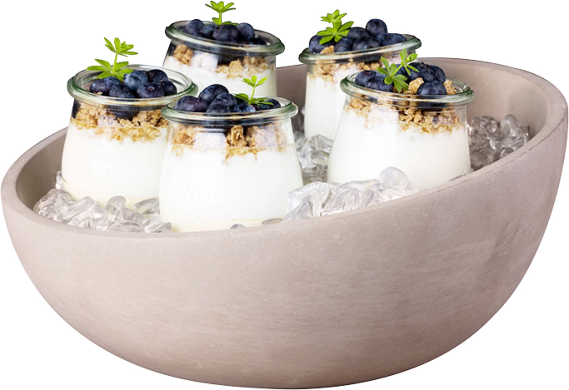 Schale aus Beton mit möbelschonender Filzunterseite. Höhe nach hinten ansteigend. Nicht für den Einsatz von Speiseöl und Essig geeignet. Stapelbar. Nicht spülmaschinengeeignet.