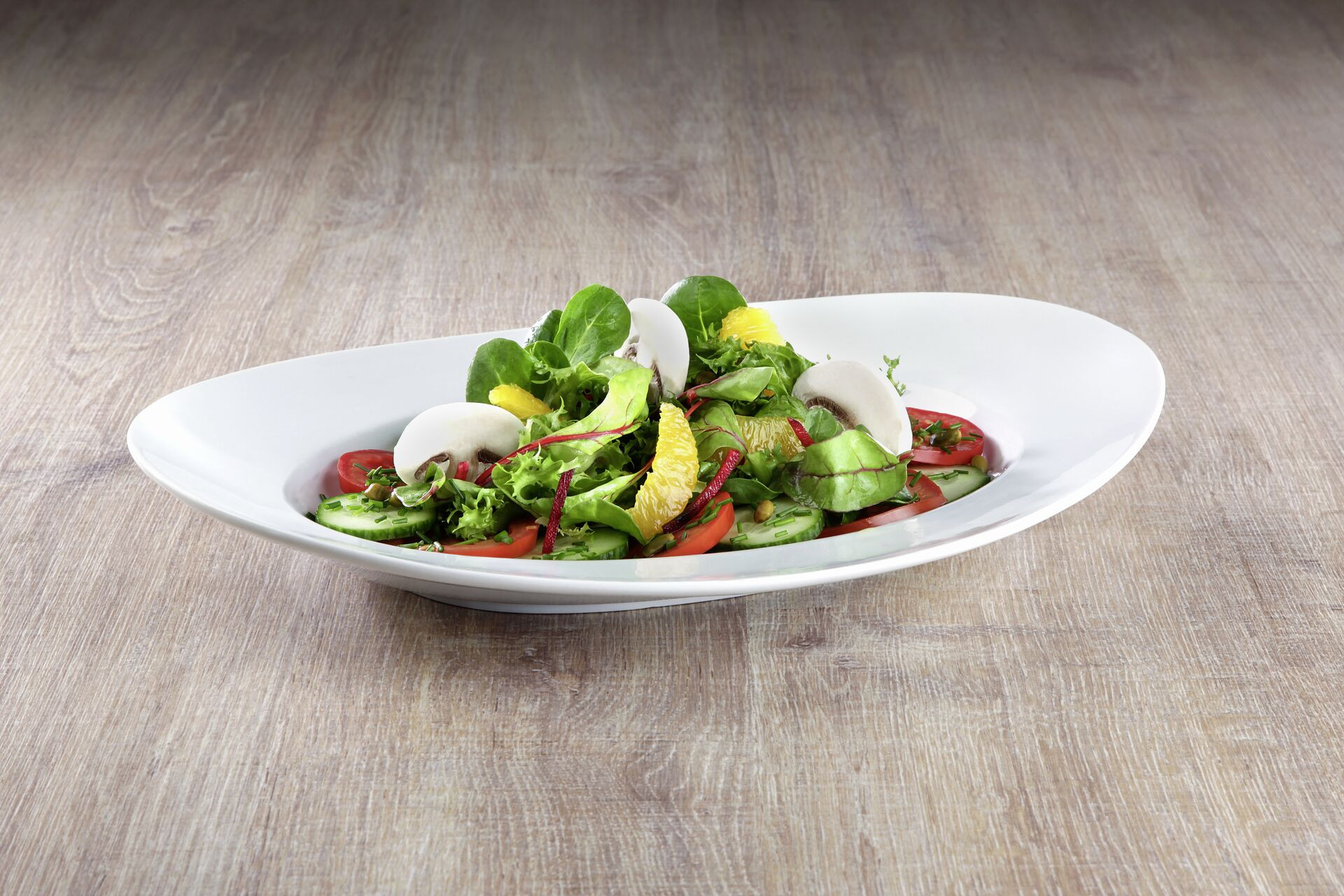 LxBxH in cm: 36,0x28,0x5,0 Porzellan, weiß. Mischsortierung. Bestens für Salate oder Pasta geeignet. Inhalt in Liter: 0,45.
