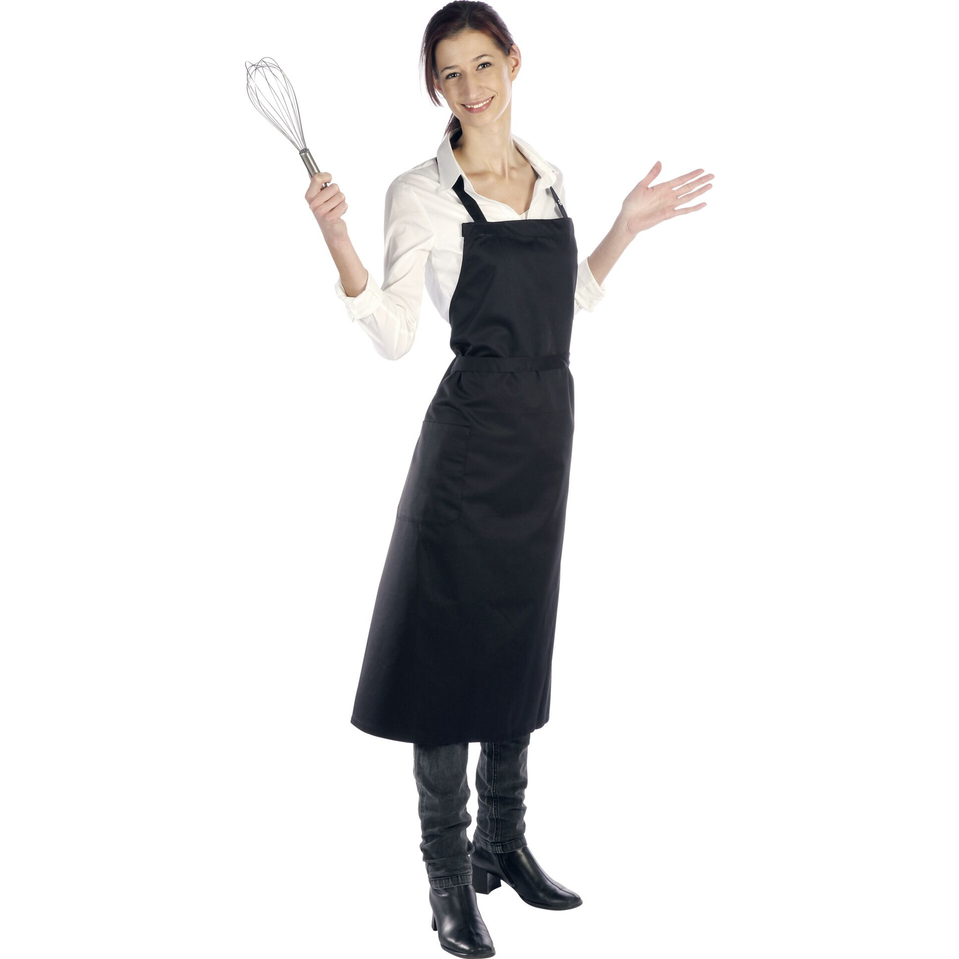 Im 3er Pack. Abmessungen LxB in cm: 100x80. 65% Polyester, 35% Baumwolle. Mit Stoffbändern. 230g/m². Verstellbares Nackenband mit Druckknöpfen. Aufgesetzte Tasche links.