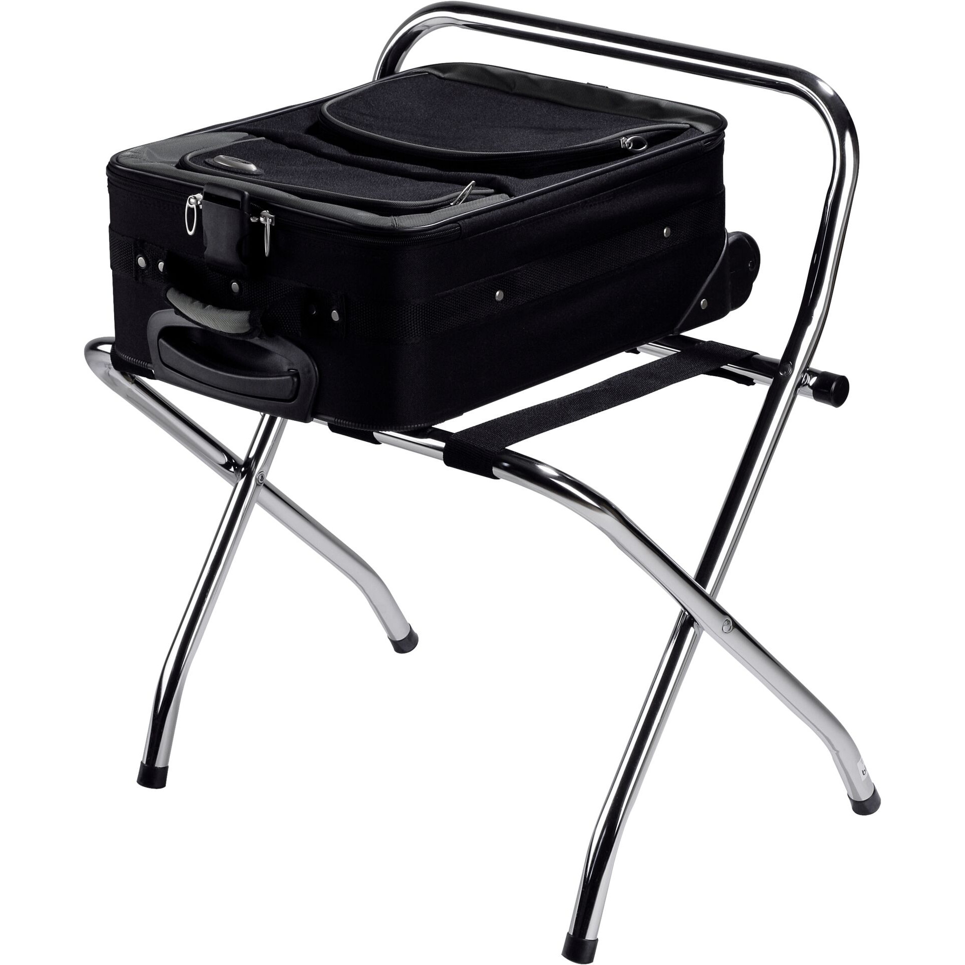 HxBxT in cm: 70x61x40 Stabiles Stahlrohrgestell, verchromt. Ø Rohr 25 mm. Bänder aus Polyester. Zusammenklappbar.