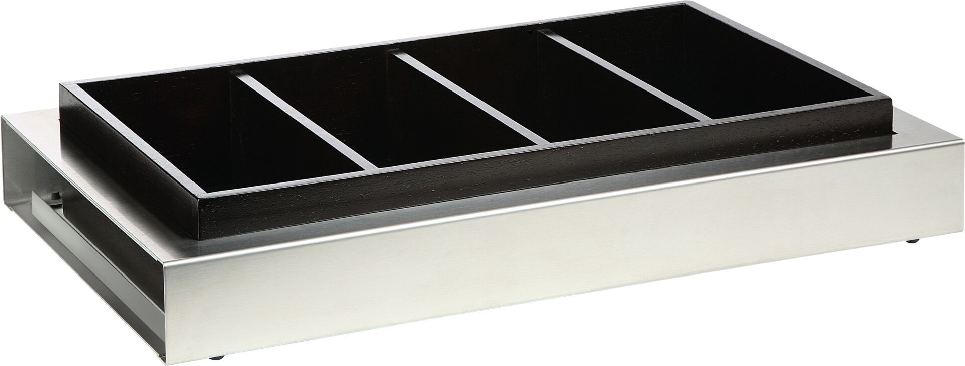 Farbe: Dunkelbraun LxBxH in cm: 50x30x9,5 Holz, natur oder dunkelbraun lackiert. 4-Fächer.