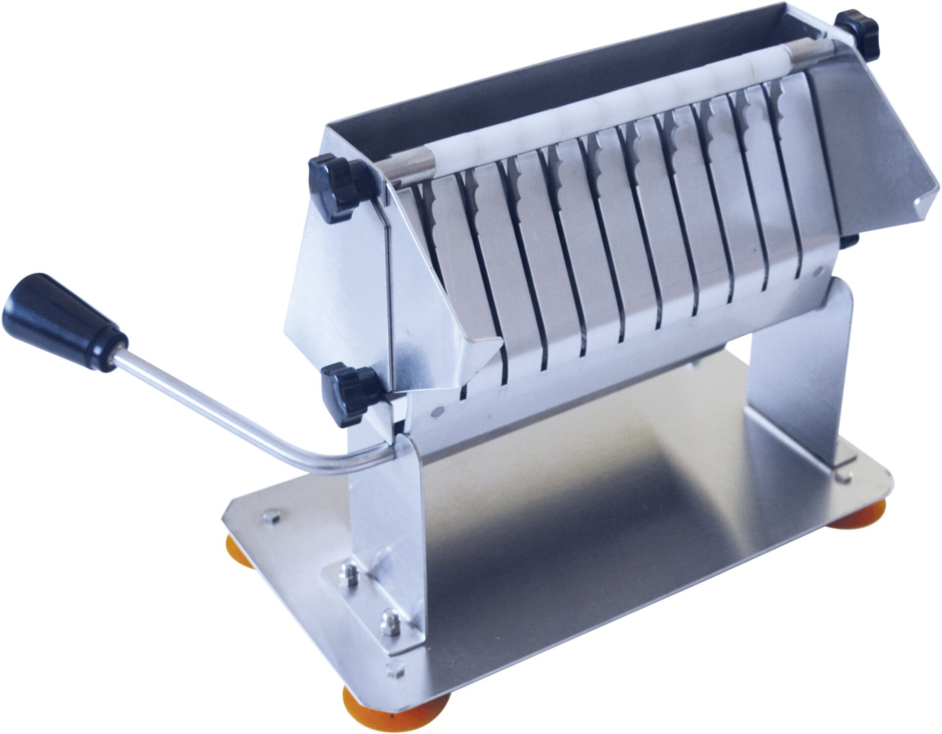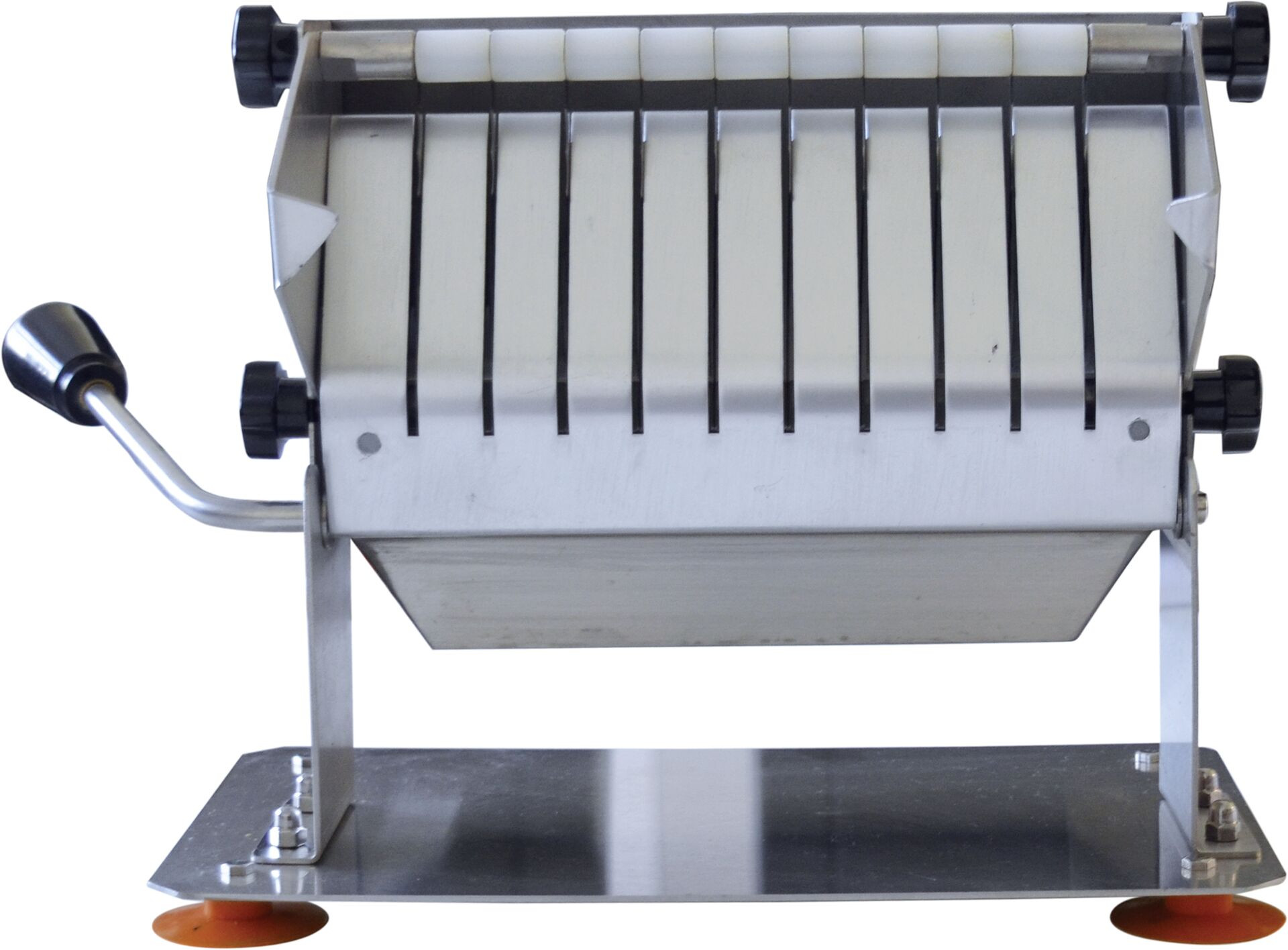 BxTxH in cm: 27x15x21 Edelstahl. Scheibenstärke 17,5 mm. 11 Abschnitte. Arbeitsbreite 21 cm. Gewicht: 2,3 kg.