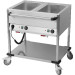 Edelstahl 18/10, für GN-Behälter mit max. 200 mm Tiefe. Beheizbar mit Temperaturregler von +30°C bis +95°C. Mit 4 Lenkrollen, davon zwei mit Feststellern.