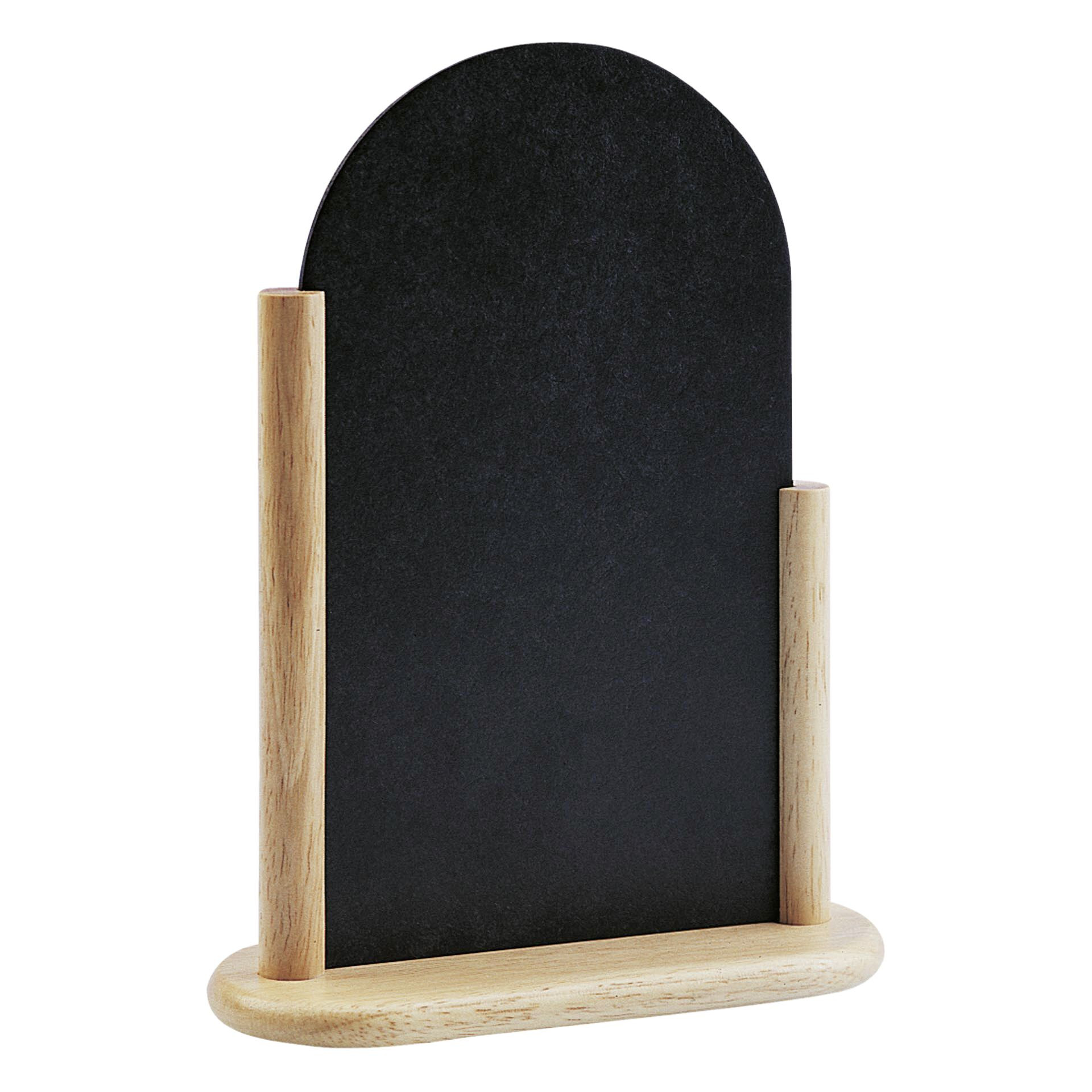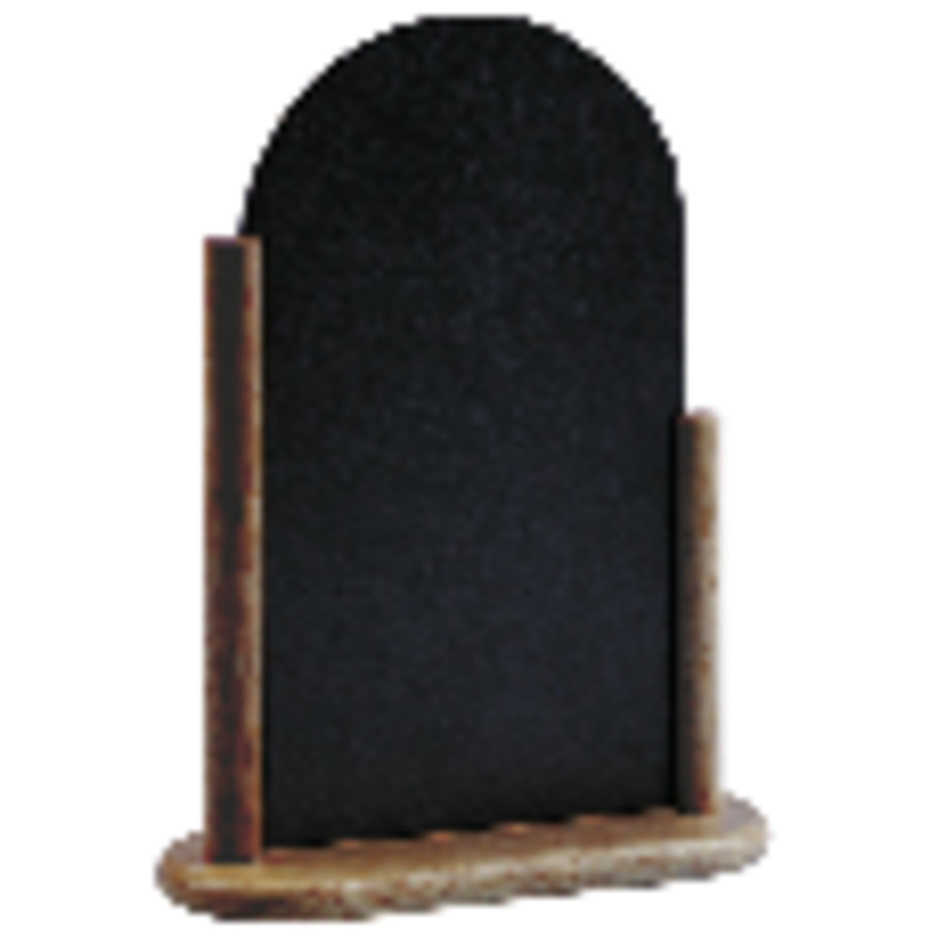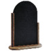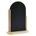 Gestell aus Holz. Inklusive einer halbrunden doppelseitigen Kreidetafel, somit beidseitig beschriftbar. Farbe: dunkelbraun BxL in cm: 16x21